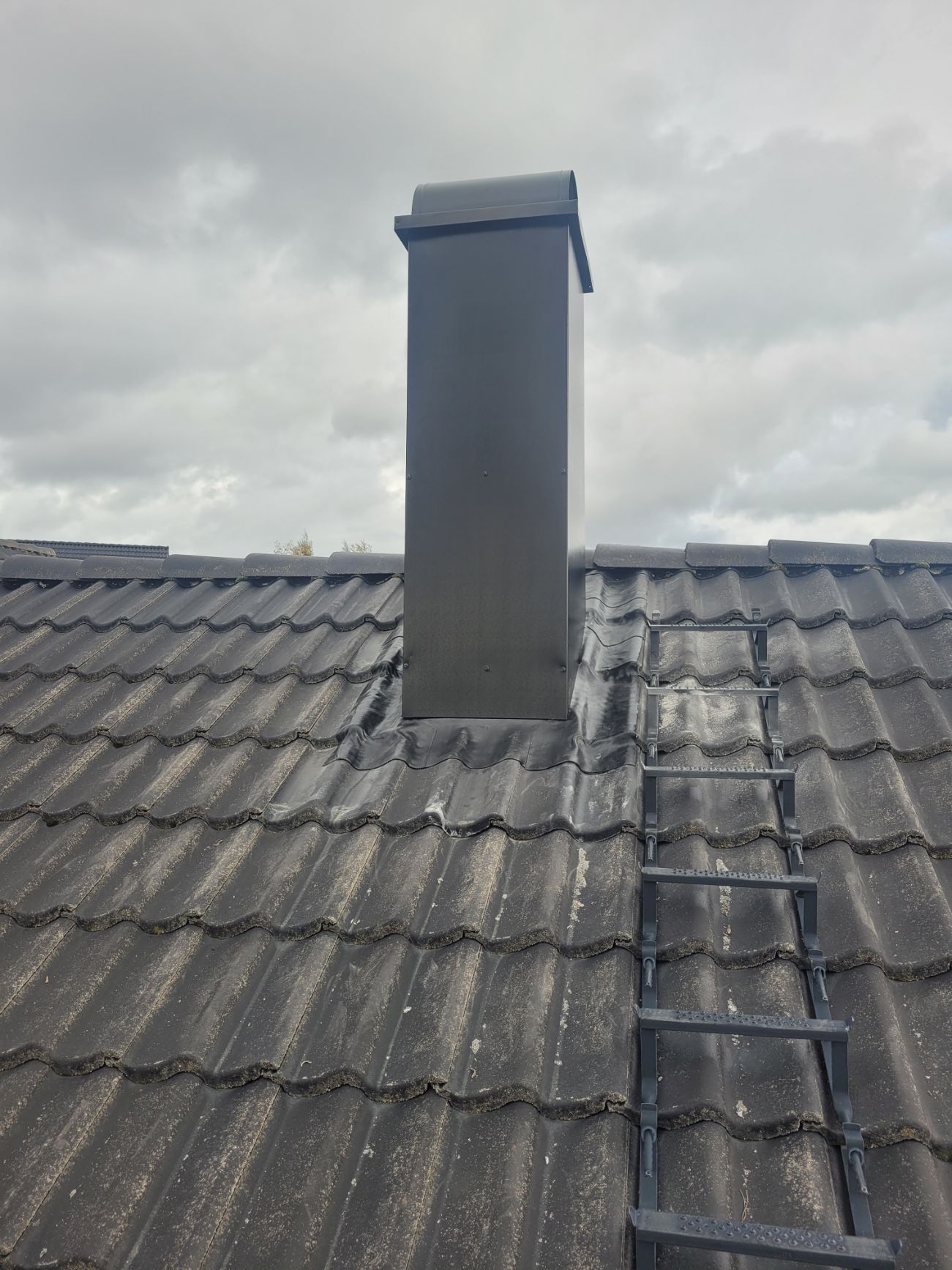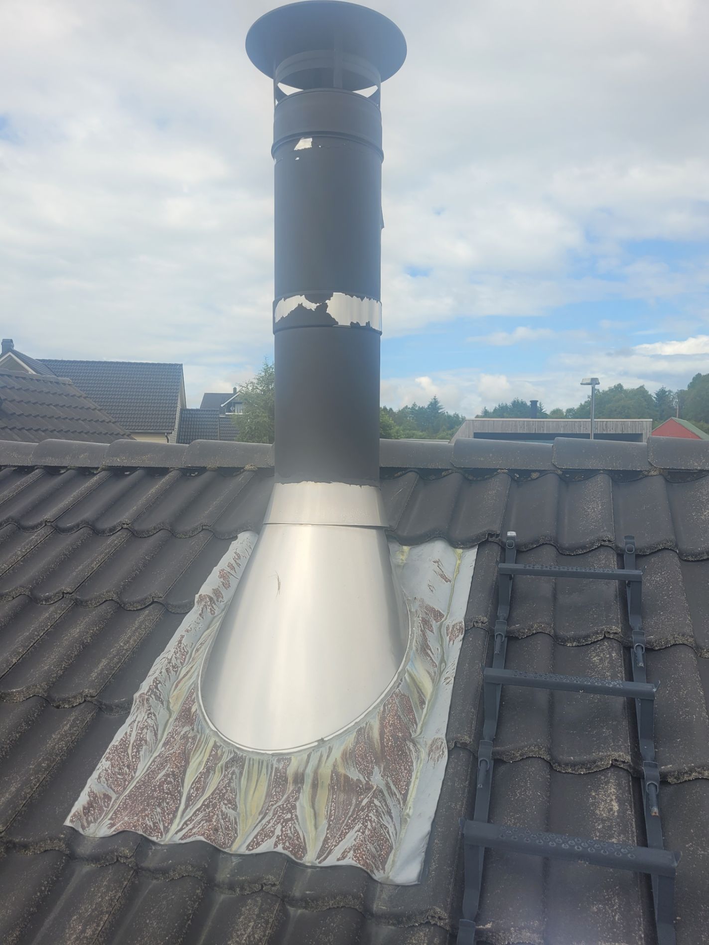- Satt på ny Wakaflex rundt kassen som holder den tett ned mot taksteinen.